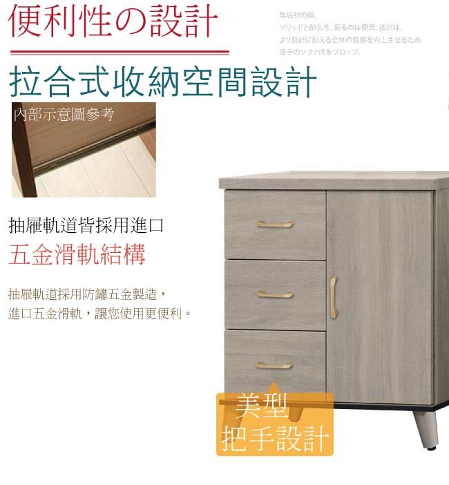 【綠家居】高格2.7尺單門三抽低餐櫃/收納櫃