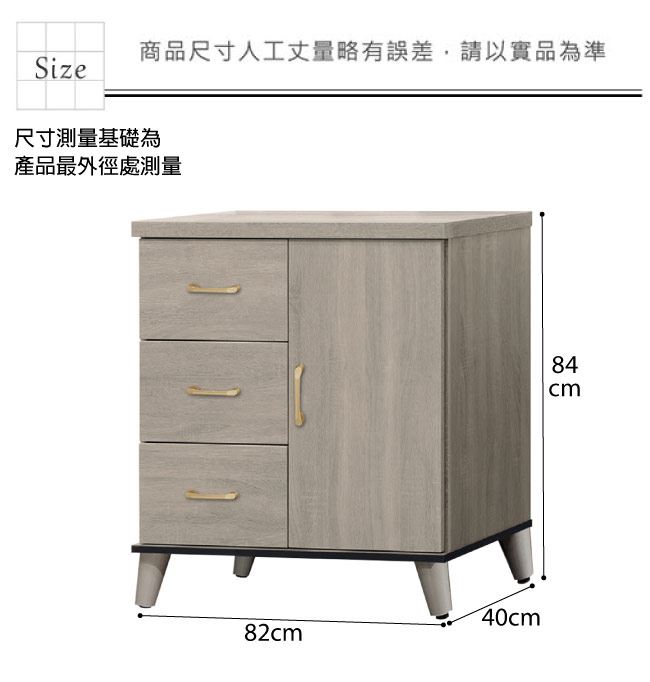 低餐櫃尺寸:(寬)82(深)40(高)84公分 ◆材質: 材質:防蛀木心板+防潮耐磨腳座+防夾手緩衝門片五金+五金滑軌結構 噴漆:防潮耐磨噴漆處理