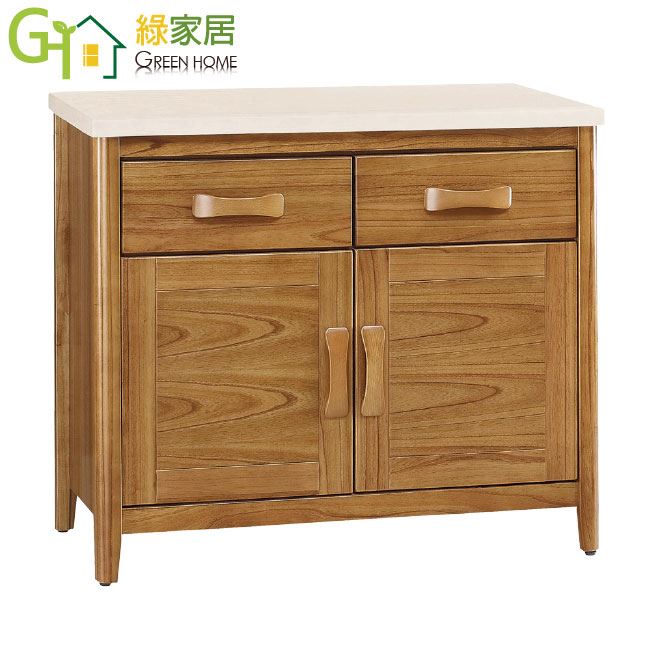 - ◆產品名稱:【綠家居】巴格柚木紋3尺雲紋石面低實木餐櫃/收納櫃