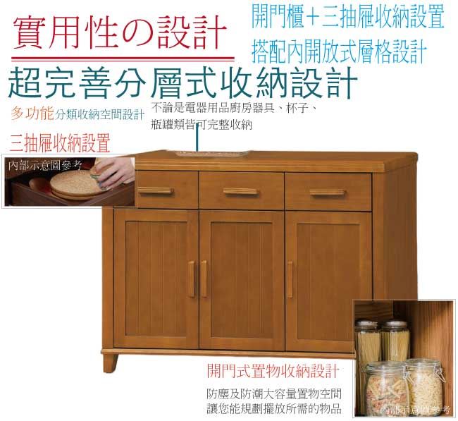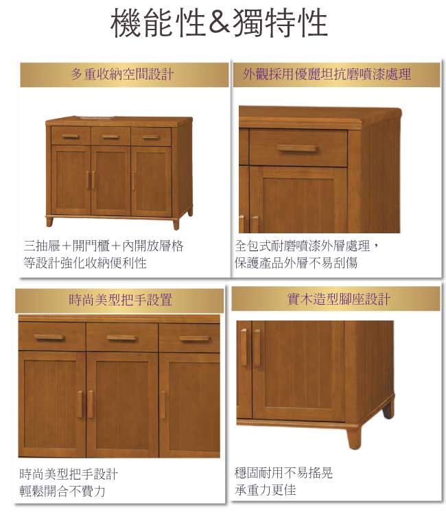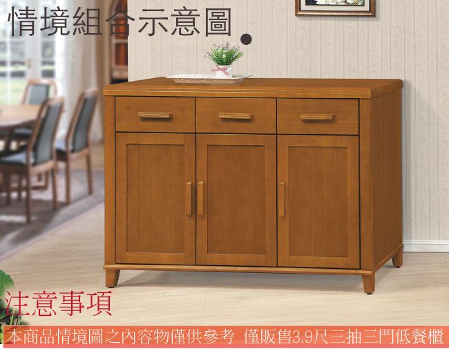 【綠家居】梅利實木3.9尺三門三抽餐櫃
