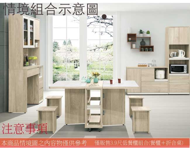 【綠家居】羅娜3.9尺多功能低餐桌櫃組合(拉合餐桌+低餐櫃)