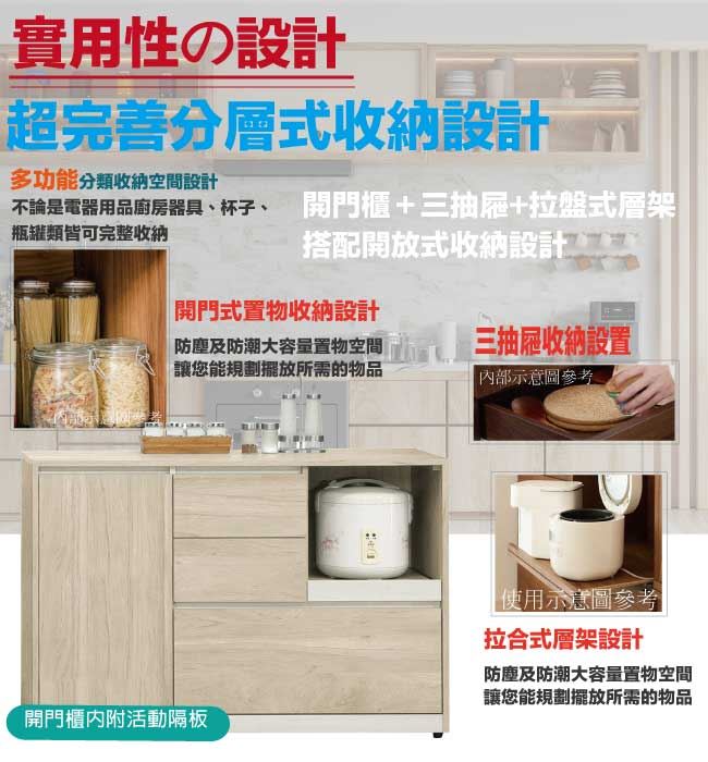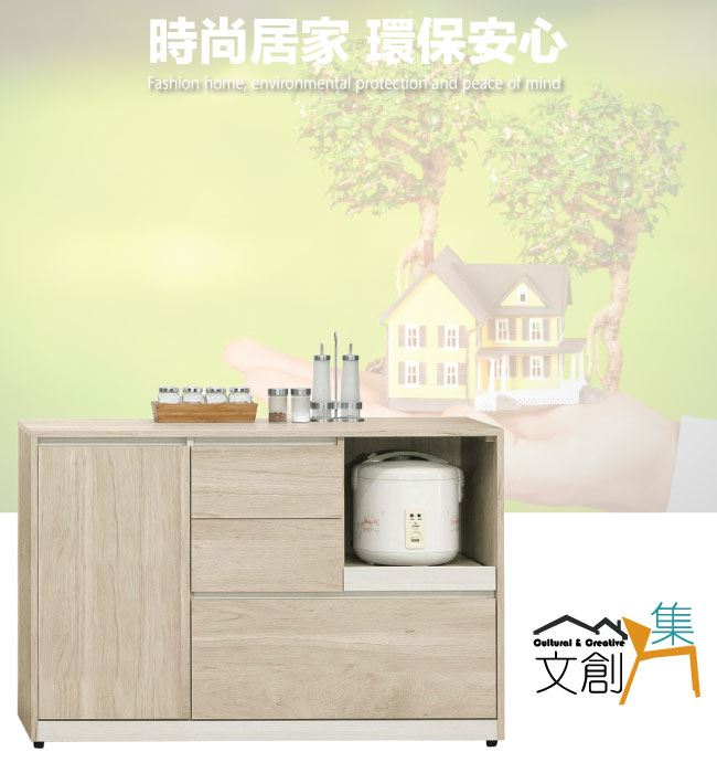 商品 介紹 | 【綠家居】羅娜3.9尺單門三抽拉盤低餐櫃 木紋雙色系+現代簡約風格+安心材質製造,整體採用防蛀木心板+防潮耐磨腳座+五金滑軌結構+防夾手緩衝門片五金等安心材質製造,產品外層採用防潮耐磨噴漆處理搭配採用開門櫃+三抽屜+拉盤式層架+內&外開放式層格等收納空間設計,全由專人配送到家,專業安心服務,替你省下更多時間! 【商品特色】 木紋雙色系+現代簡約風格+安心材質製造,使用放心+搭配居家更便利 採用防蛀木心板+防潮耐磨腳座+五金滑軌結構+防夾手緩衝門片五金等安心材質製造 產品外層採用防潮耐磨噴漆處理 採用開門櫃+三抽屜+拉盤式層架+內&外開放式層格等收納空間設計 此商品不需要DIY組立,此商品為組立後之成品 品質保證、專業設計、貼心服務 全由專人配送到家,專業安心服務,替您省下更多時間 |