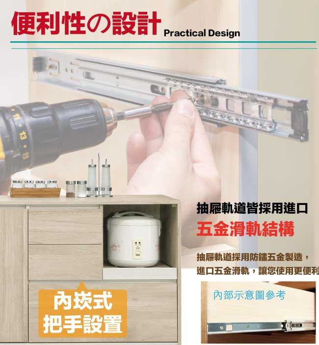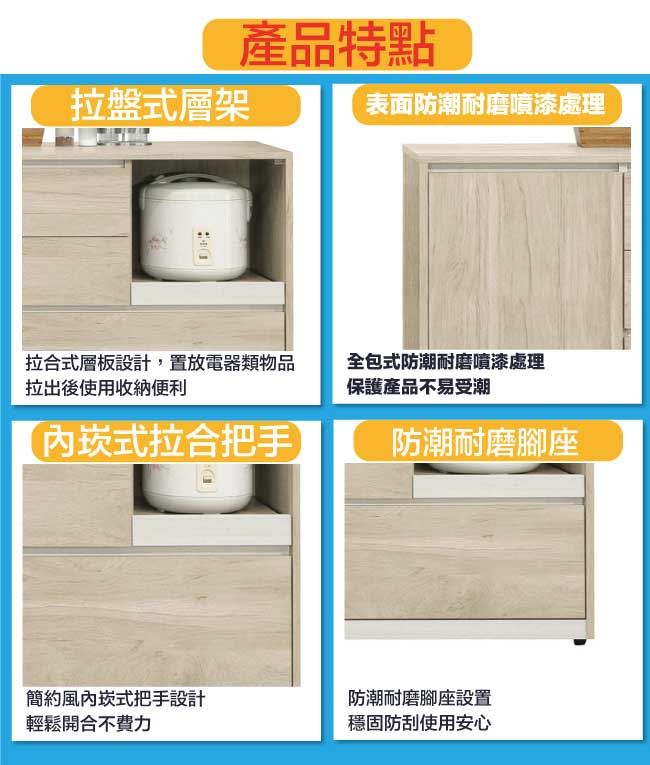 【綠家居】羅娜3.9尺單門三抽拉盤低餐櫃