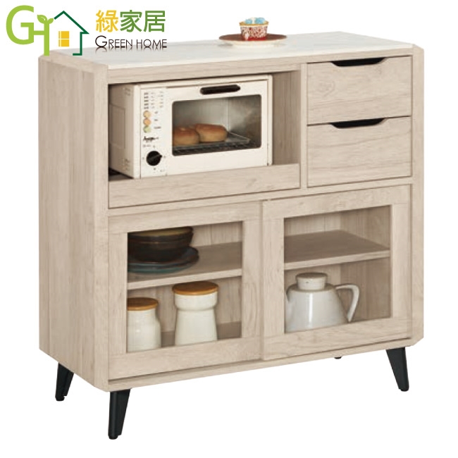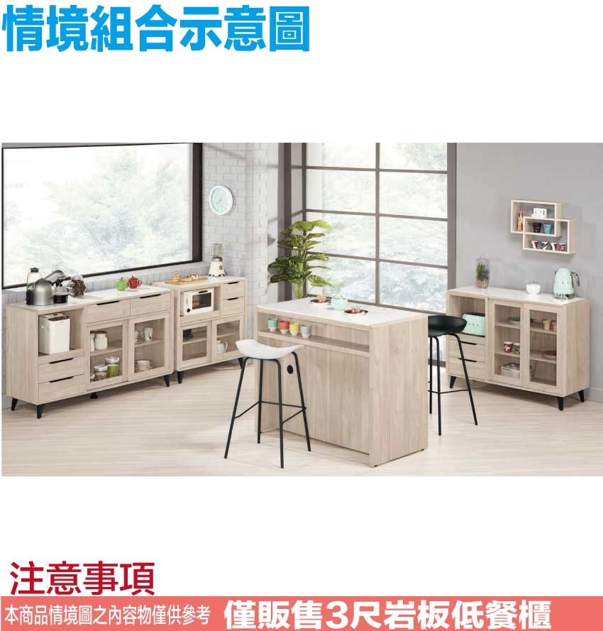 【綠家居】萊雅雙色3尺岩板拉盤低餐櫃