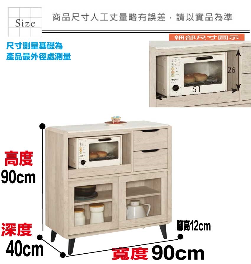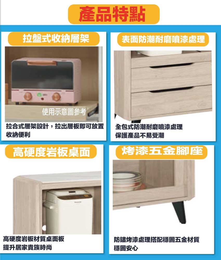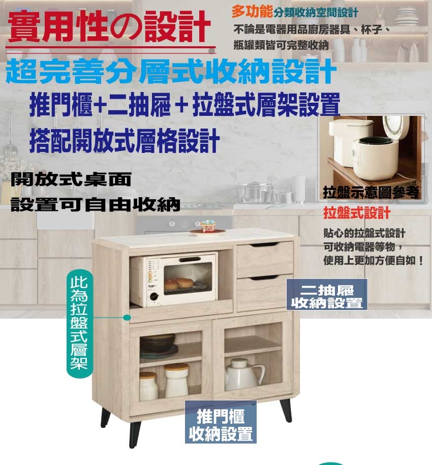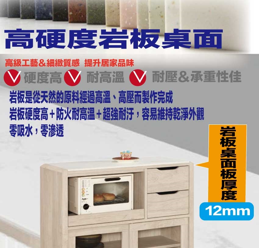 - ◆產品名稱:【綠家居】萊雅雙色3尺岩板拉盤低餐櫃