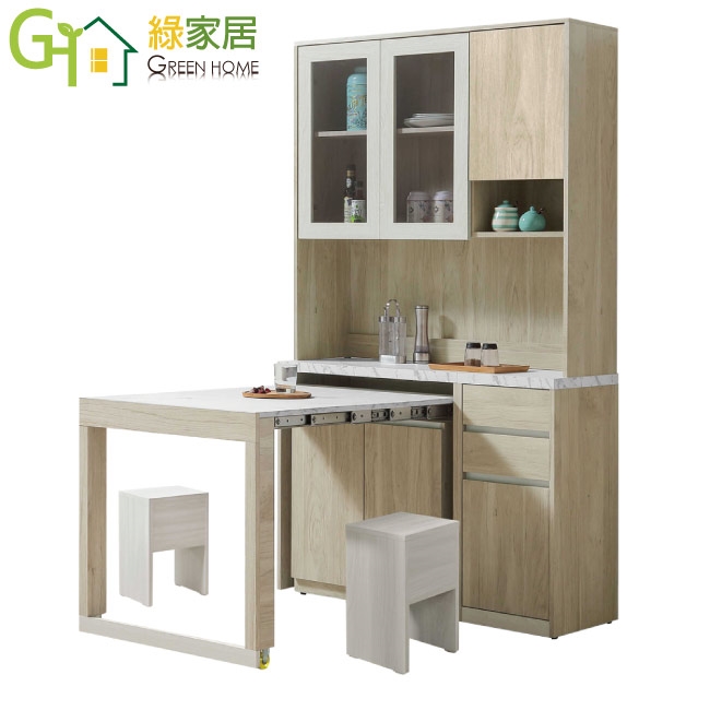 【綠家居】克利3.9尺可伸縮中島桌高餐櫃組合(附二張椅凳+桌面板可拉合使用)