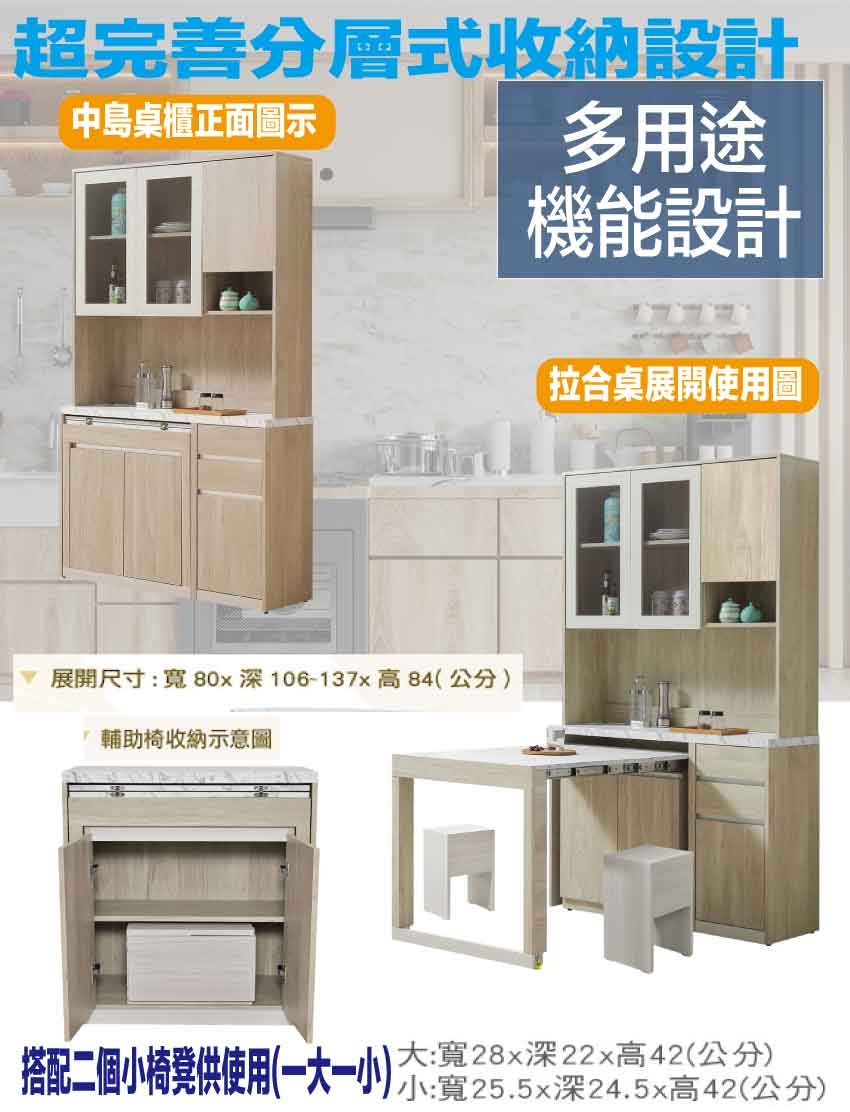中島桌展開尺寸:寬80x 深106~137x 高84(公分)