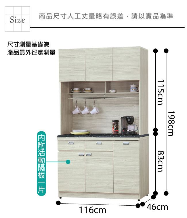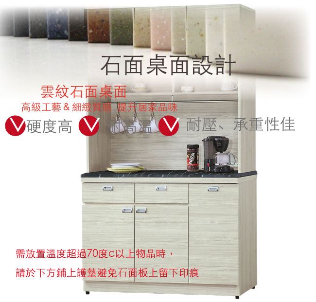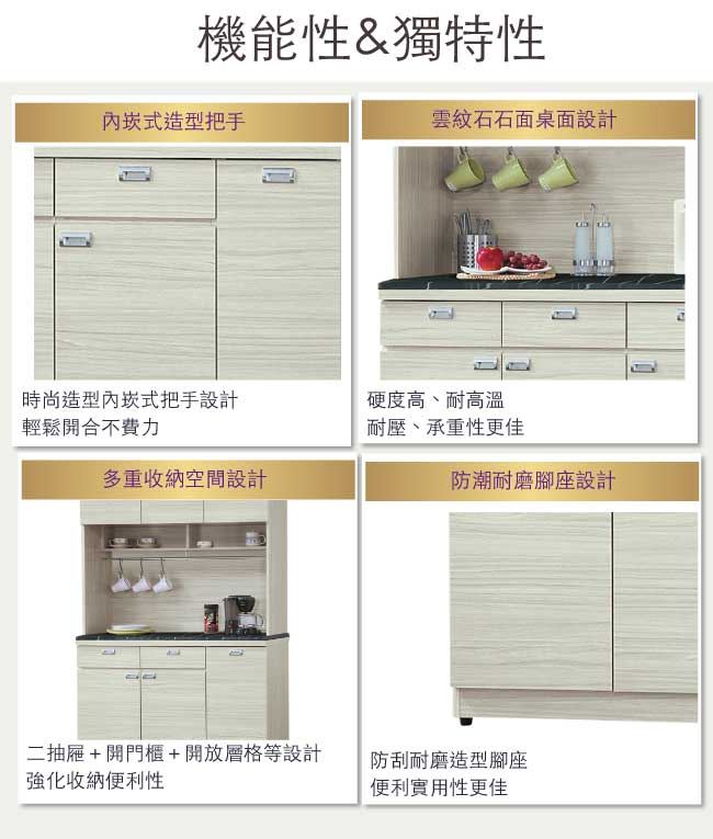 材質 | ◆產品名稱:【綠家居】新加坡 現代3.9尺雲紋石面餐櫃/收納櫃組合(上+下座) 收納櫃尺寸:(寬)116x(深)46x(高)198/公分 ◆材質: 材質:防蛀木心板+五金滑軌結構+1.2cm雲紋石面+耐磨防刮腳座 塗漆:優利坦全包式耐磨噴漆處理 |