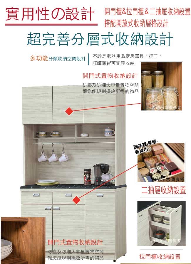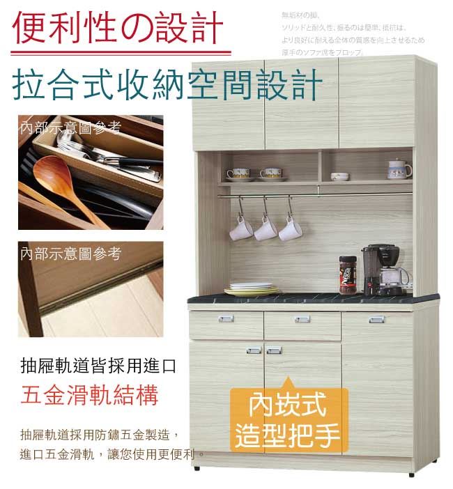 【綠家居】新加坡 現代3.9尺雲紋石面餐櫃/收納櫃組合(上+下座)