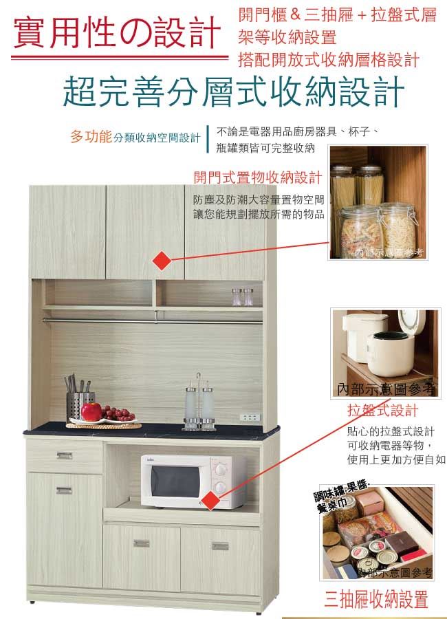 【綠家居】曼谷 現代3.9尺雲紋石面餐櫃/收納櫃組合(上+下座)