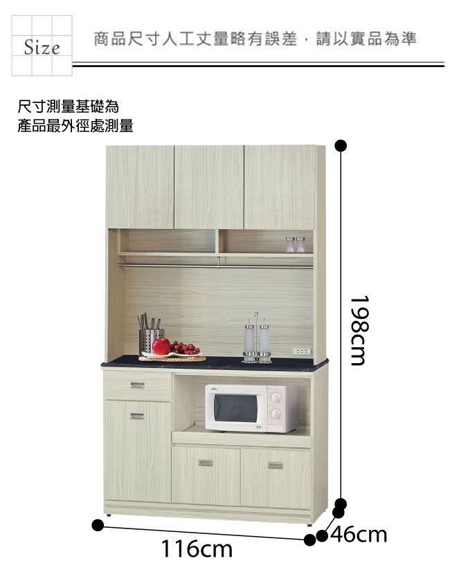 材質 | ◆產品名稱:【綠家居】曼谷 現代3.9尺雲紋石面餐櫃/收納櫃組合(上+下座) 收納櫃尺寸:(寬)116x(深)46x(高)198/公分 ◆材質: 材質:防蛀木心板+五金滑軌結構+1.2cm雲紋石面+耐磨防刮腳座 塗漆:優利坦全包式耐磨噴漆處理 |