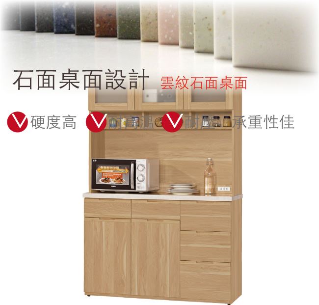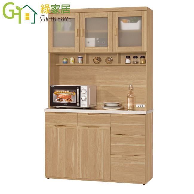 【綠家居】班尼 時尚3.9尺雲紋石面高餐櫃組合