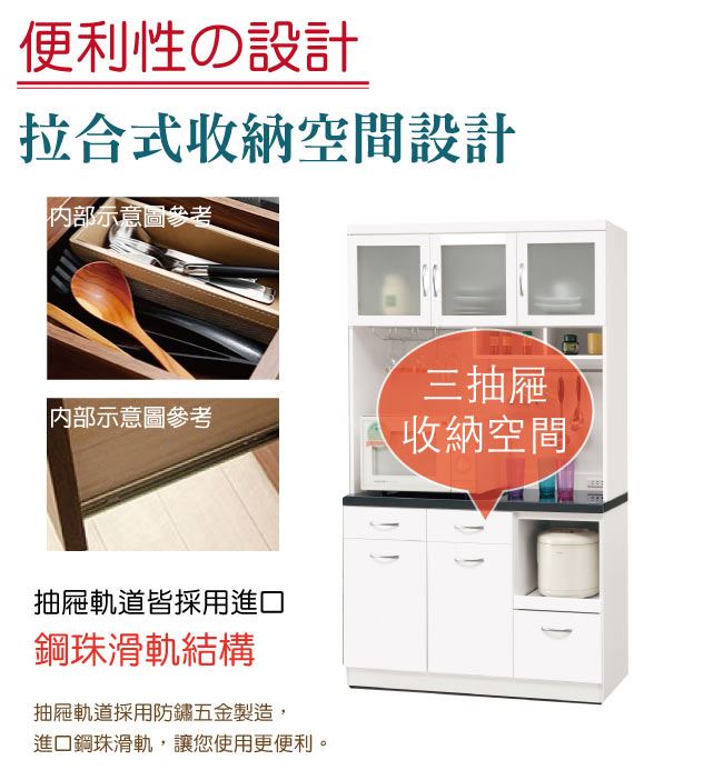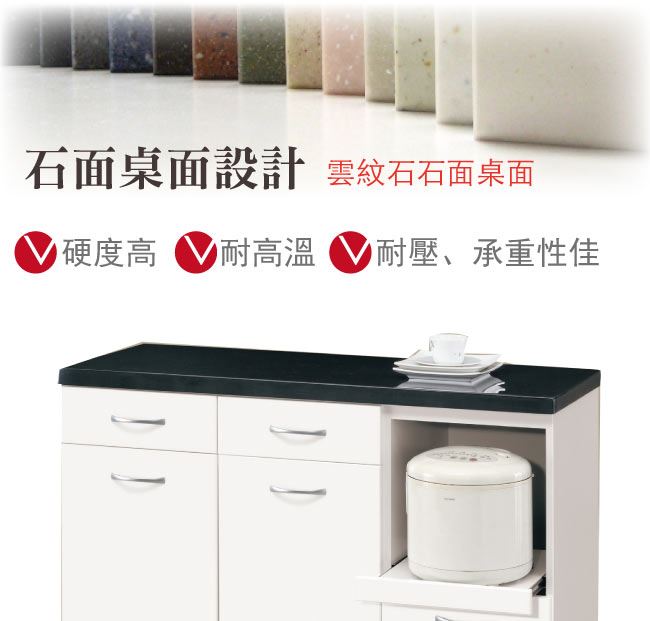 商品介紹 | 【綠家居】尼卡爾 時尚3.9尺雲紋石面高餐櫃組合 時尚白色系+現代簡約風格+安心材質製造,整體採用防蛀木心板+防潮MDF板材+防潮耐磨腳座+五金滑軌結構+2cm雲紋石面板等安心材質製造,產品外層採用防潮亮面噴漆處理搭配三抽屜+拉合式層架+開門櫃+開放式收納層格等收納空間設計,全由專人配送到家,專業安心服務,替你省下更多時間! 【商品特色】 時尚白色系+現代簡約風格+安心材質製造,使用放心+搭配居家更便利 採用防蛀木心板+防潮MDF板材+防潮耐磨腳座+五金滑軌結構+2cm雲紋石面板等安心材質製造 產品外層採用防潮亮面噴漆處理 搭配採用三抽屜+拉合式層架+開門櫃+開放式收納層格等收納空間設計 此商品不需要DIY組立,此商品為組立後之成品 品質保證、專業設計、貼心服務 全由專人配送到家,專業安心服務,替您省下更多時間 |