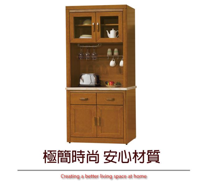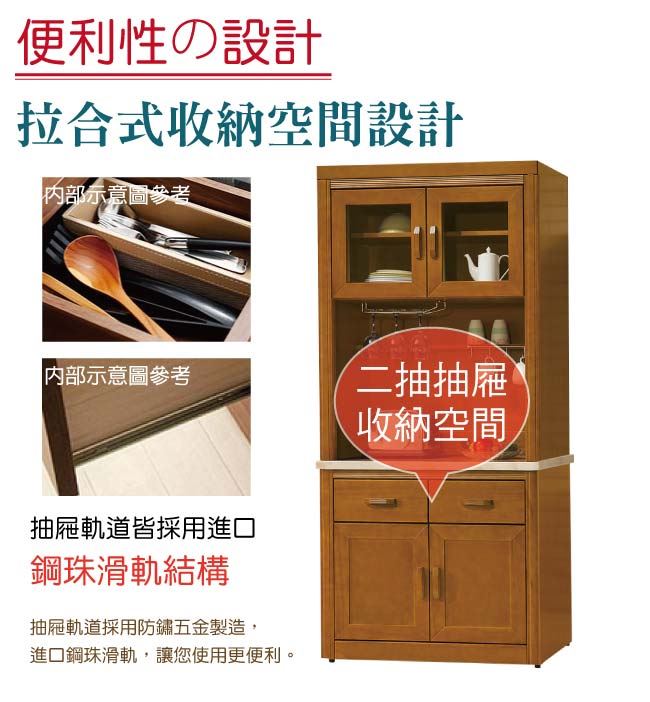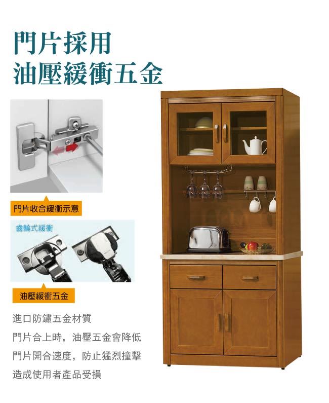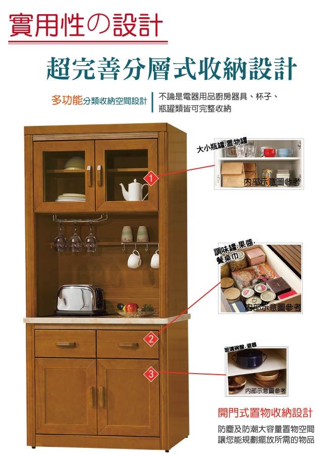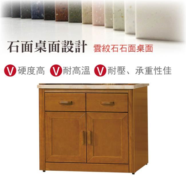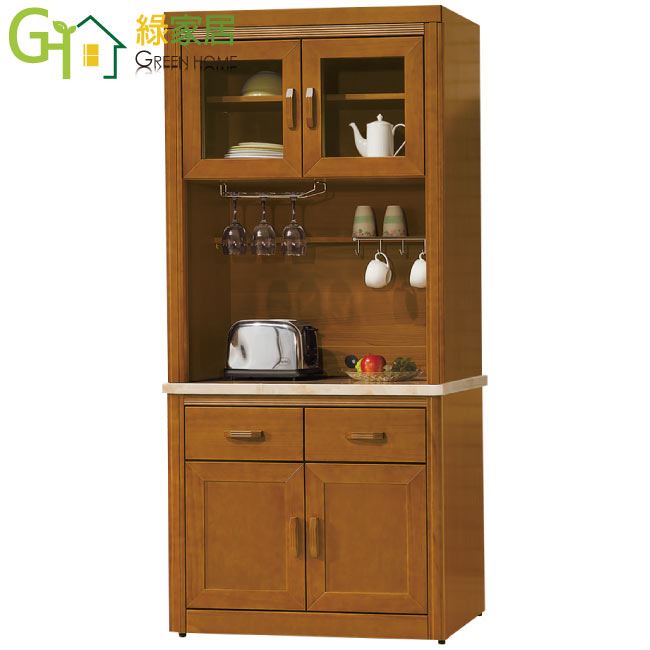 【綠家居】瑪麗 實木3尺雲紋石面高餐櫃/收納櫃組合
