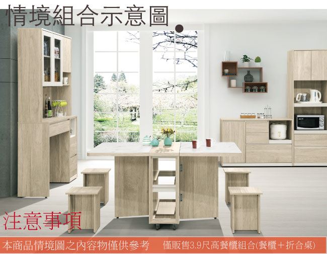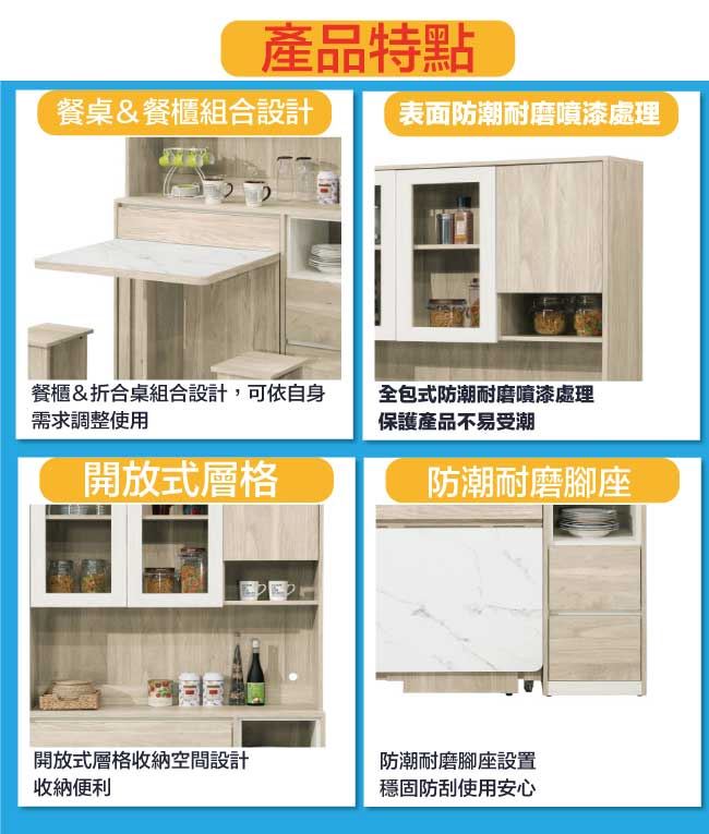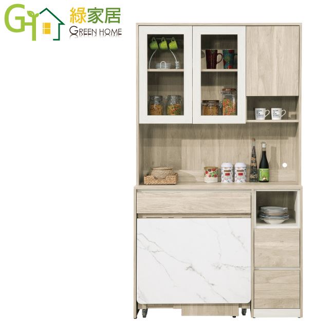 【綠家居】羅娜3.9尺多功能高餐桌櫃組合(拉合餐桌+餐櫃)