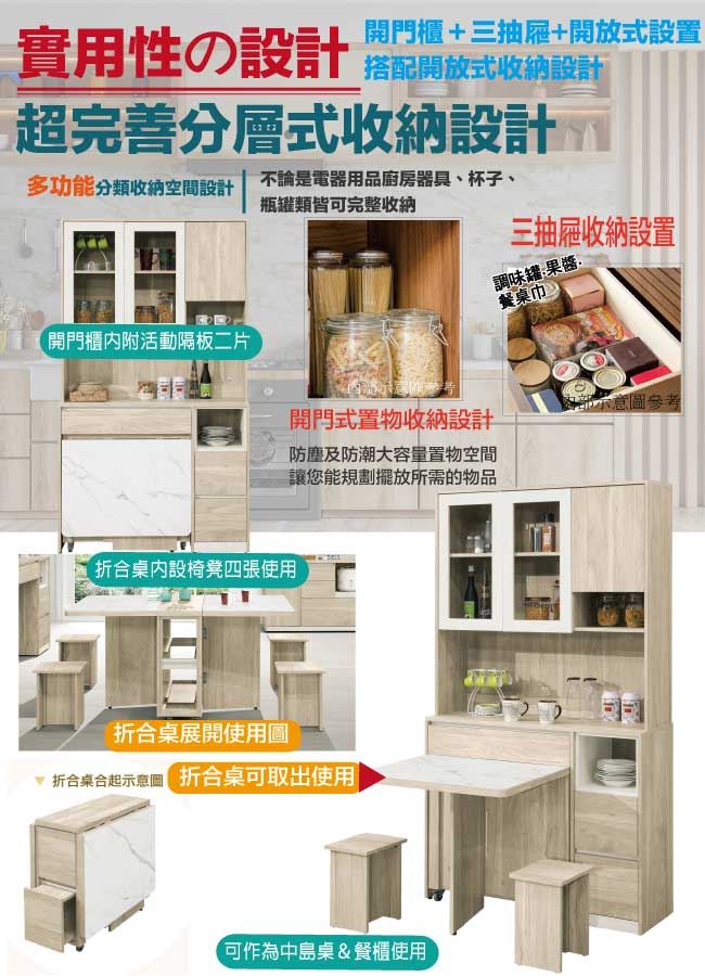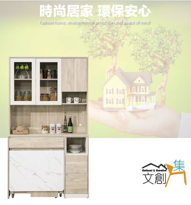 商品 介紹 | 【綠家居】羅娜3.9尺多功能高餐桌櫃組合(拉合餐桌+餐櫃) 木紋雙色系+現代簡約風格+安心材質製造,整體採用防蛀木心板+防潮耐磨腳座+五金滑軌結構+防夾手緩衝門片五金+仿大理石紋木質桌面板等安心材質製造,產品外層採用防潮耐磨噴漆處理搭配採用開門櫃+三抽屜+內&外開放式層格等收納空間設計,全由專人配送到家,專業安心服務,替你省下更多時間! 【商品特色】 木紋雙色系+現代簡約風格+安心材質製造,使用放心+搭配居家更便利 餐桌+餐櫃組合,櫃內折合式餐桌可拉出使用,展開後即可變成中島桌及5尺長方型餐桌(內含四張椅凳),打造居家高便利機能性空間設計 採用防蛀木心板+防潮耐磨腳座+五金滑軌結構+防夾手緩衝門片五金+仿大理石紋木質桌面板等安心材質製造 產品外層採用防潮耐磨噴漆處理 採用開門櫃+三抽屜+內&外開放式層格等收納空間設計 此商品不需要DIY組立,此商品為組立後之成品 品質保證、專業設計、貼心服務 全由專人配送到家,專業安心服務,替您省下更多時間 |