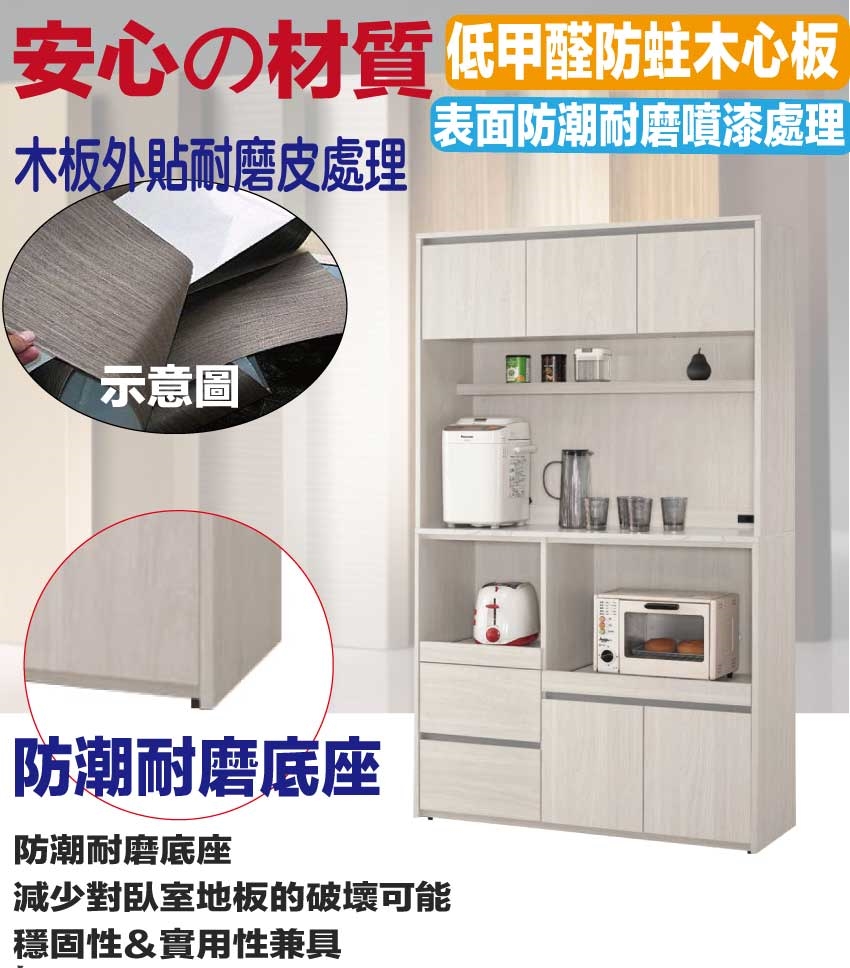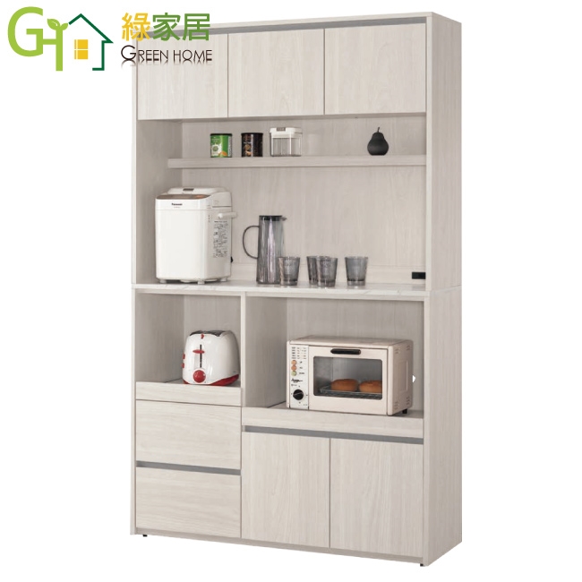 ★偏遠地區需額外加收運費,下標請先問與答詢問★ ★下訂前注意 由於商品流動較快,下訂前請先詢問是否有貨在下訂喔~★ 【綠家居】華爾雙色3.5尺五門拉盤高餐櫃組合 木紋雙色系+安心材質製造,使用放心+搭配居家更便利,採用防蛀木心板+防潮耐磨底座+防夾手緩衝門片五金+仿石紋耐磨美耐皿桌面板+五金滑軌結構等安心材質製造 ,外層採用防潮耐磨噴漆處理搭配採用開門櫃+拉盤層架+二抽屜+內&外開放層格+便利插座等收納空間設計,全由專人配送到家,專業安心服務,替你省下更多時間!