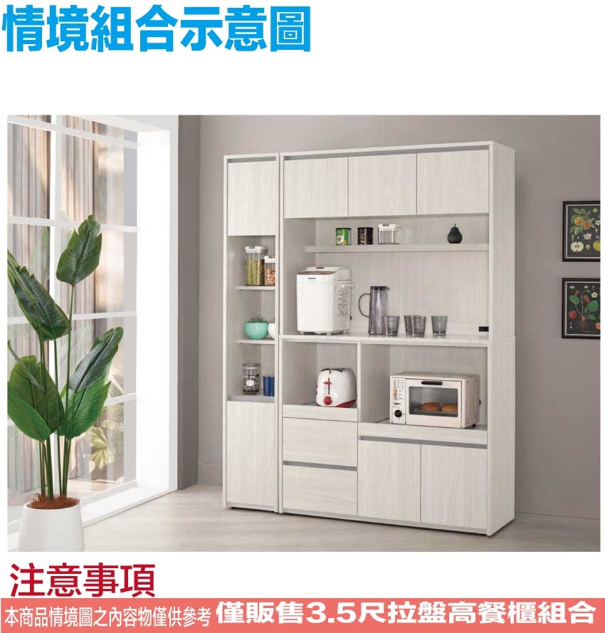 - ◆產品名稱:【綠家居】華爾雙色3.5尺五門拉盤高餐櫃組合