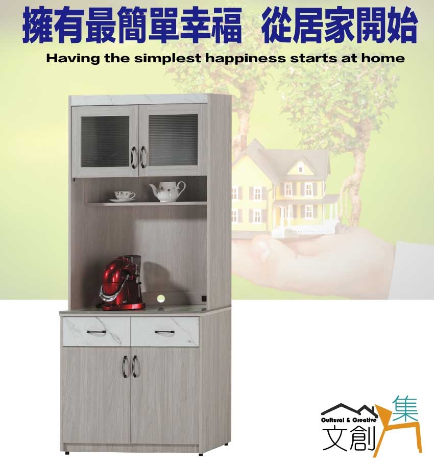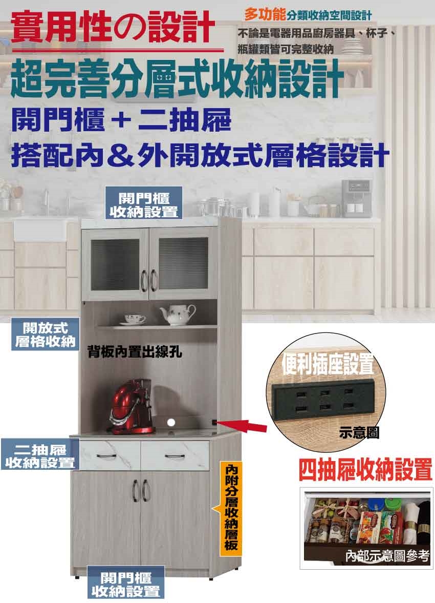 【綠家居】曼奇3尺岩板二抽高餐櫃組合