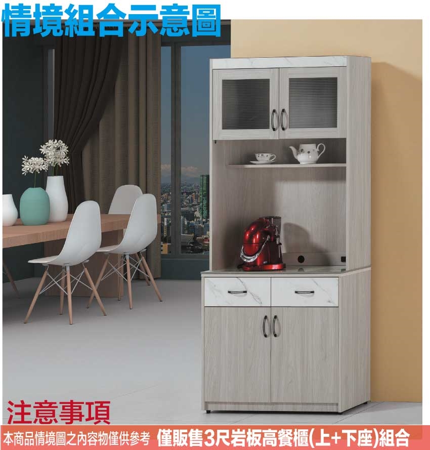 - ◆產品名稱:【綠家居】曼奇3尺岩板二抽高餐櫃組合