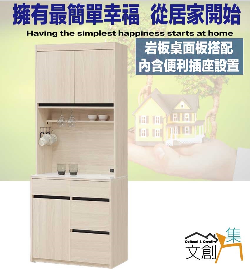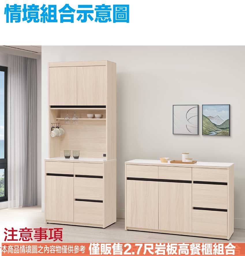 - 產品名稱:【綠家居】波可2.7尺岩板高餐櫃組合(內含插座)