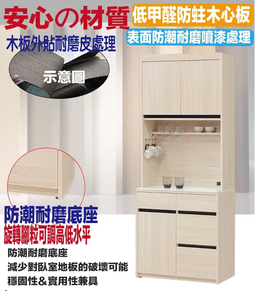 ★偏遠地區需額外加收運費,下標請先問與答詢問★ ★下訂前注意 由於商品流動較快,下訂前請先詢問是否有貨在下訂喔~★ 【綠家居】波可2.7尺岩板高餐櫃組合(內含插座) 淺橡木紋色系+現代簡約風格+安心材質製造,使用放心+搭配居家更便利,整體採用防蛀木心板+防潮耐磨底座(可調高低水平)+防夾手緩衝門片五金+8mm高硬度岩板桌面板等安心材質製造搭配外層採用防潮耐磨噴漆處理 ,採用開門櫃+四抽屜+內&外開放層格等收納空間設計,全由專人配送到家,專業安心服務,替你省下更多時間!