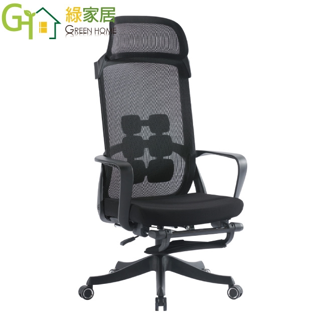 【綠家居】夏亞尼高背黑網布多功能主管椅/辦公椅(頭枕可調+可後仰&高度調整+伸縮腳靠枕)