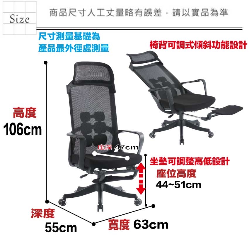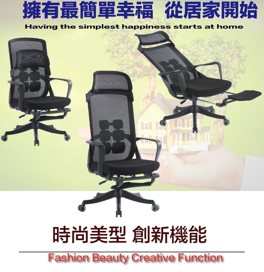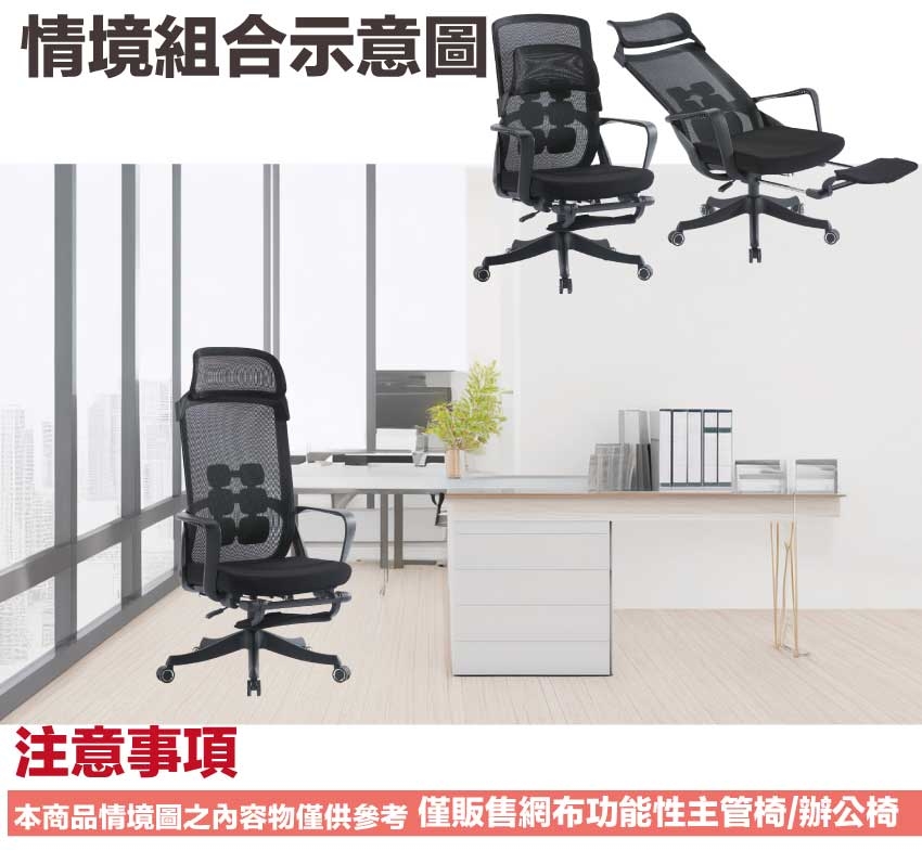 - ◆產品名稱:【綠家居】夏亞尼高背黑網布多功能主管椅/辦公椅(頭枕可調+可後仰&高度調整+伸縮腳靠枕)