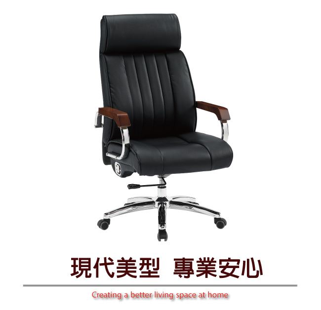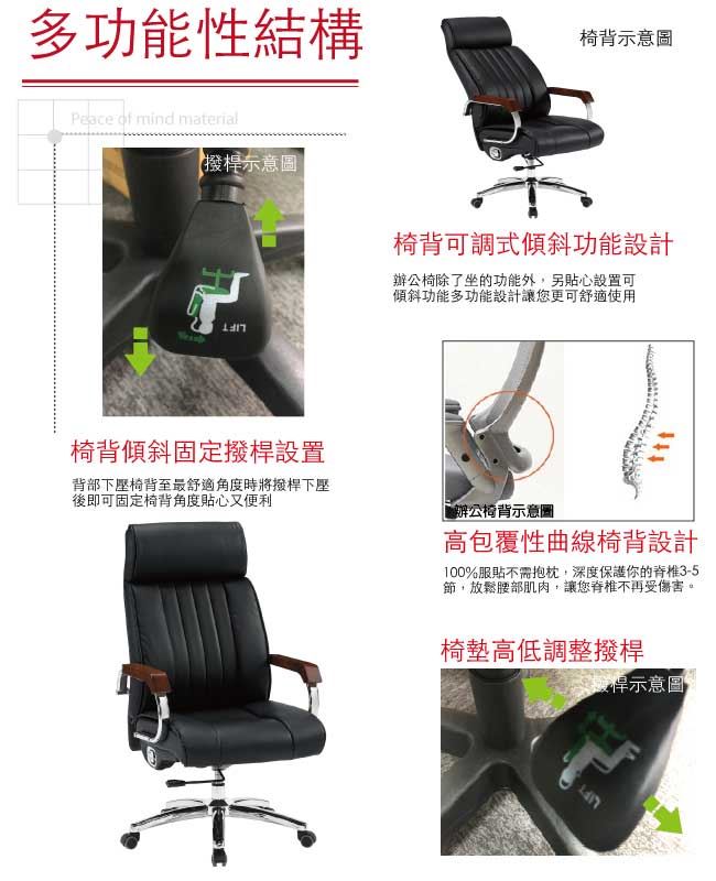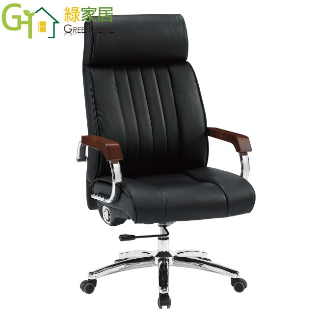 【綠家居】德爾 黑高背皮革椅墊辦公椅