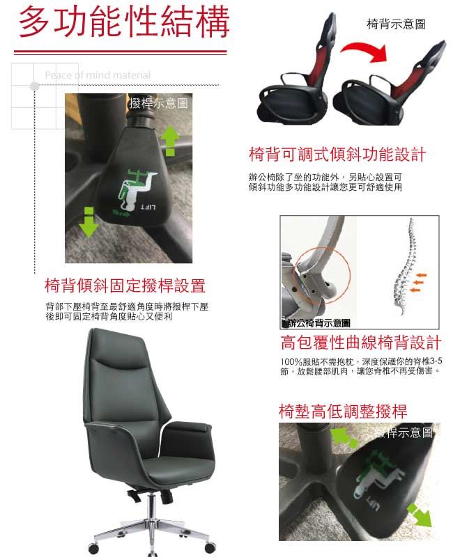 【綠家居】丘基 時尚灰皮革多功能辦公椅