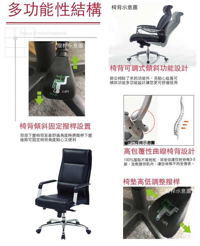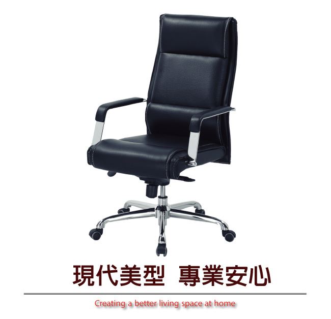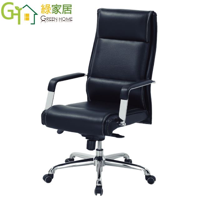 【綠家居】蒲隆 時尚黑皮革高背舒適辦公椅