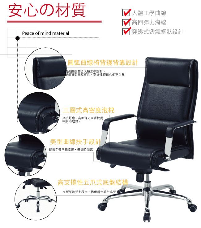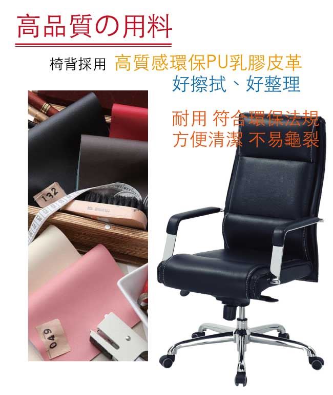 商品介紹 | 【綠家居】蒲隆 時尚黑皮革高背舒適辦公椅 材質採用高密度高彈性泡棉+防鏽五金材質+柔韌環保PU皮革+不鏽鋼五金腳座&靜音PP材質滾輪+SGS認證合格氣壓棒+防爆托盤裝置+高支撐性五爪式底盤結構等安心材質,另備有椅背後仰+椅身高低調整撥桿機能性設計加上美型扶手曲線設置。產品免組裝+全由專人配送到家,專業安心服務,替你省下更多時間! 【商品特色】 高密度高彈性泡棉+不鏽鋼五金材質椅身安心材質製造 不鏽鋼五金腳座&靜音PP材質滾輪+SGS認證合格氣壓棒安心材質製造 防爆托盤裝置+高支撐性五爪式底盤結構等安心材質製造 另有椅背後仰+椅身高低調整撥桿機能性設計加上美型曲線扶手設置 此商品不需要自行組裝,專人組裝完成配送到府即可使用 |