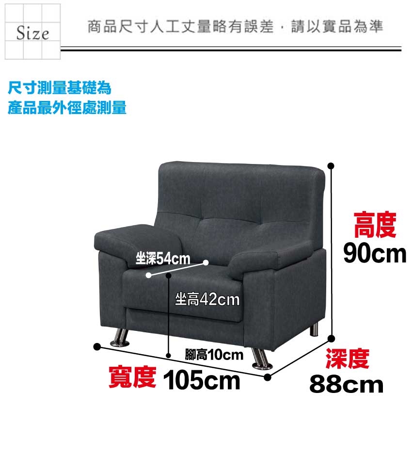 1人沙發椅尺寸:(寬)105x(深)88x(高)90/公分