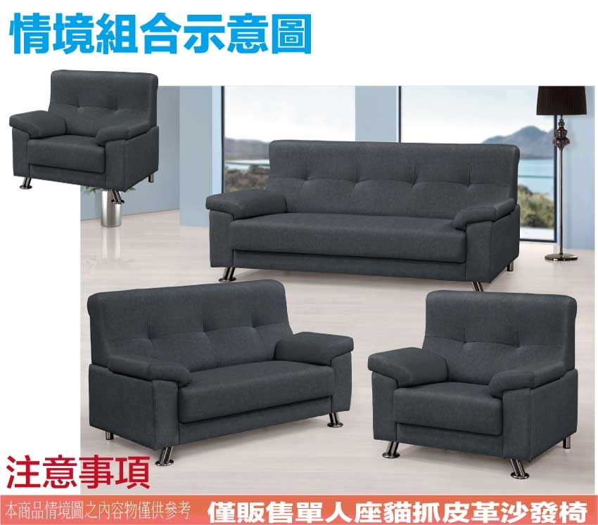 ★偏遠地區需額外加收運費,下標請先問與答詢問★ ★下訂前注意 由於商品流動較快,下訂前請先詢問是否有貨在下訂喔~★ 【綠家居】綠雅深灰貓抓皮革單人座沙發椅 現代深灰色系+安心材質製造,使用放心+搭配居家更便利,採用內部實木底框+電鍍金屬腳座+耐磨貓抓皮革+高回彈泡棉等安心材質製造 ,全由專人配送到家,專業安心服務,替你省下更多時間!