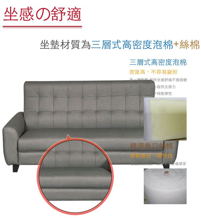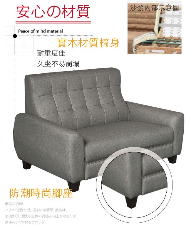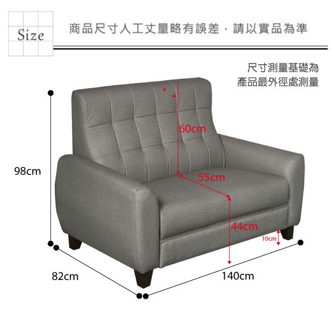 材質 | ◆產品名稱: 【綠家居】拉米堡 現代灰貓抓皮革獨立筒二人座沙發椅 產品尺寸: 2人座:(寬)140x(深)82x(高)98/ 公分 材質:桐木實木骨架椅身+黑漆防潮腳座 皮革:耐磨貓抓皮革 坐墊:獨立筒彈簧座包+三層式高密度泡棉+絲棉 |