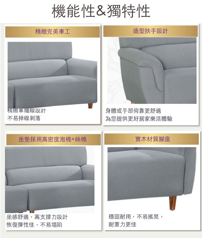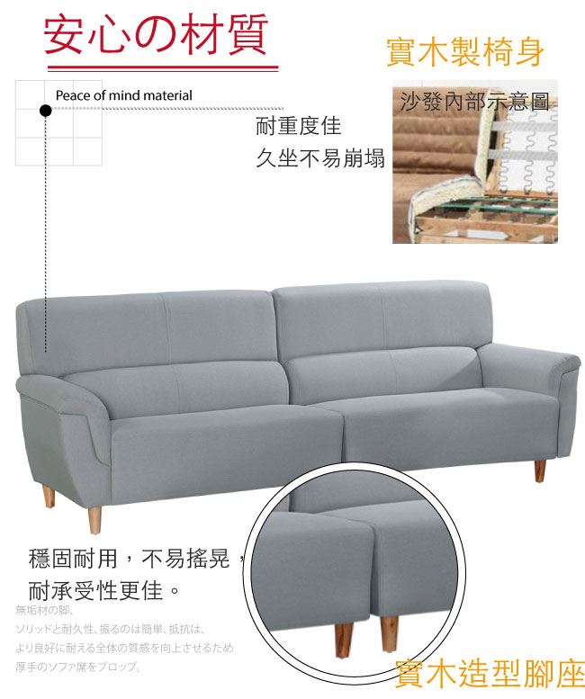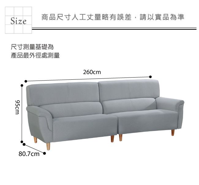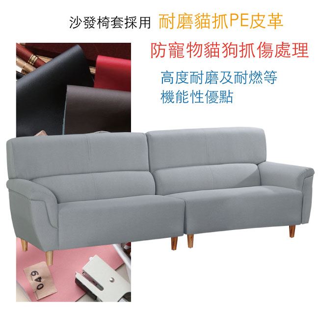 材質 | ◆產品名稱: 【綠家居】雅加達 現代灰貓抓皮革四人座沙發椅 產品尺寸: 尺寸:(寬)260x(深)80.7x(高)95/ 公分 材質:桐木實木骨架椅身+實木造型腳座 皮革:耐刮貓抓皮革 坐墊:三層式高密度泡棉+絲棉 |
