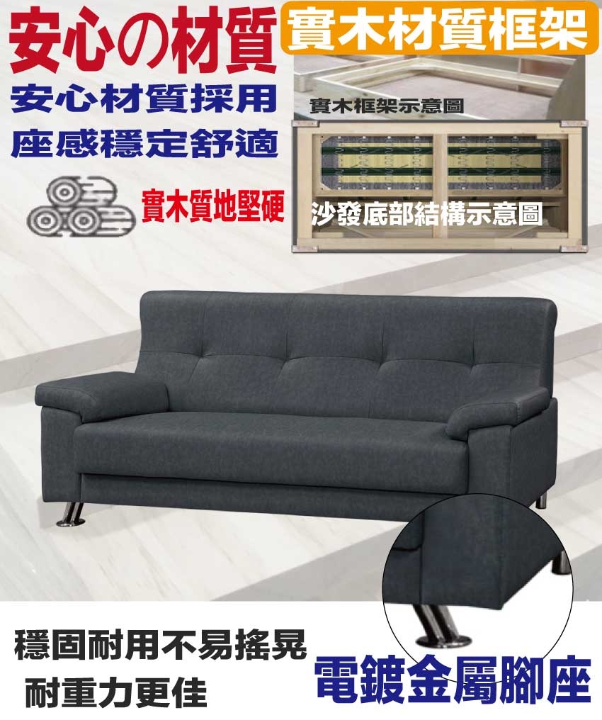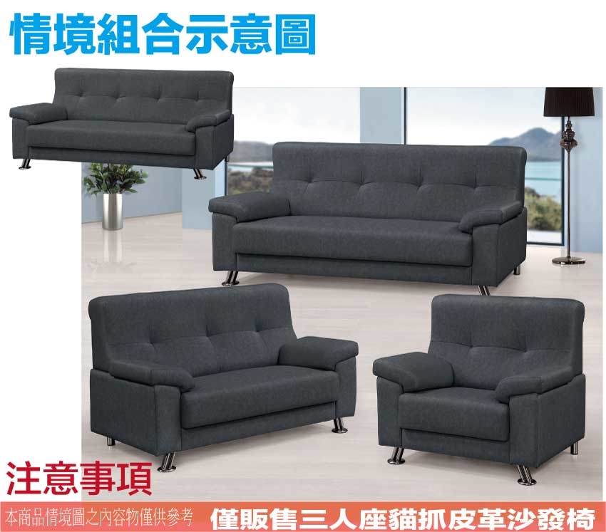 ★偏遠地區需額外加收運費,下標請先問與答詢問★ ★下訂前注意 由於商品流動較快,下訂前請先詢問是否有貨在下訂喔~★ 【綠家居】綠雅深灰貓抓皮革三人座沙發椅 現代深灰色系+安心材質製造,使用放心+搭配居家更便利,採用內部實木底框+電鍍金屬腳座+耐磨貓抓皮革+高回彈泡棉等安心材質製造 ,全由專人配送到家,專業安心服務,替你省下更多時間!