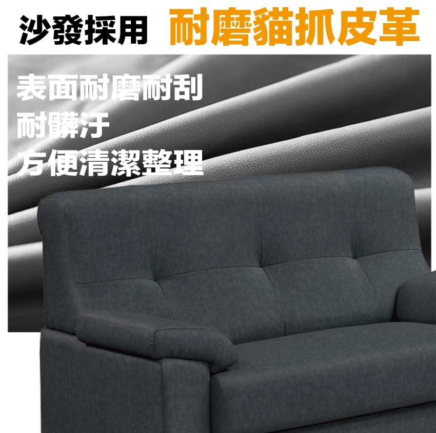 【綠家居】綠雅深灰貓抓皮革三人座沙發椅
