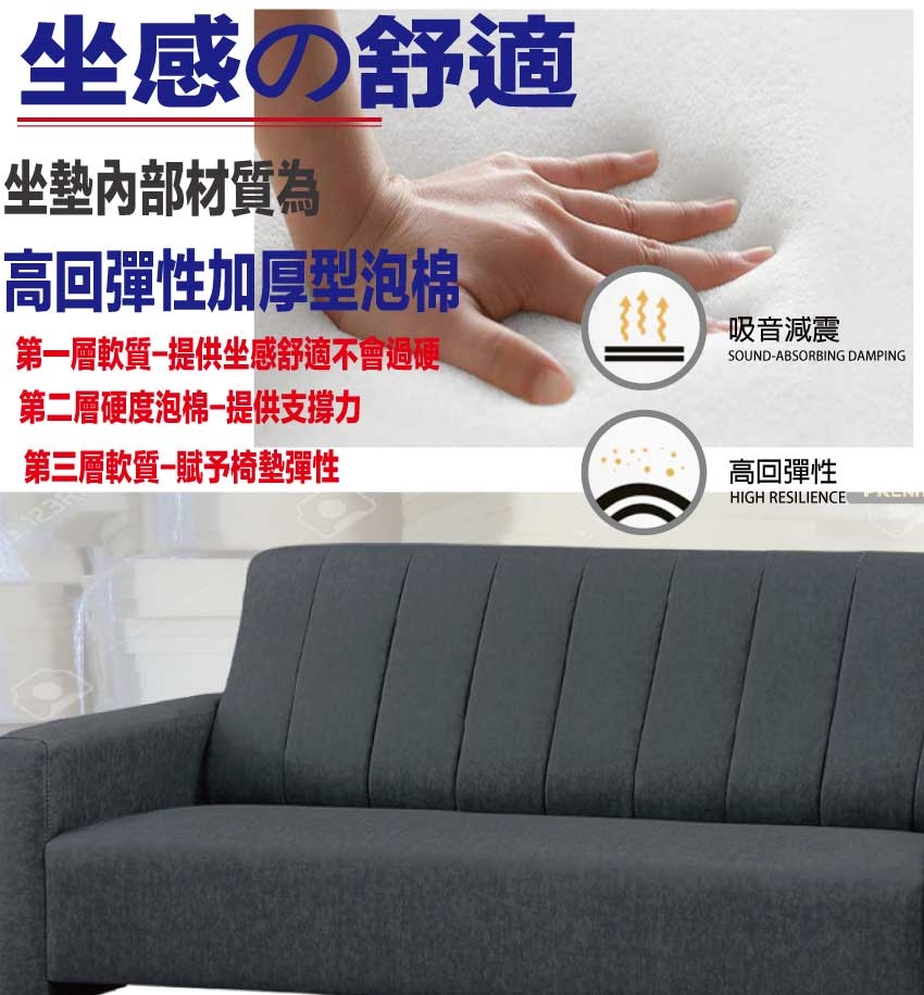 採用內部實木底框+防潮黑漆腳座+耐磨貓抓皮革+高回彈泡棉等安心材質製造