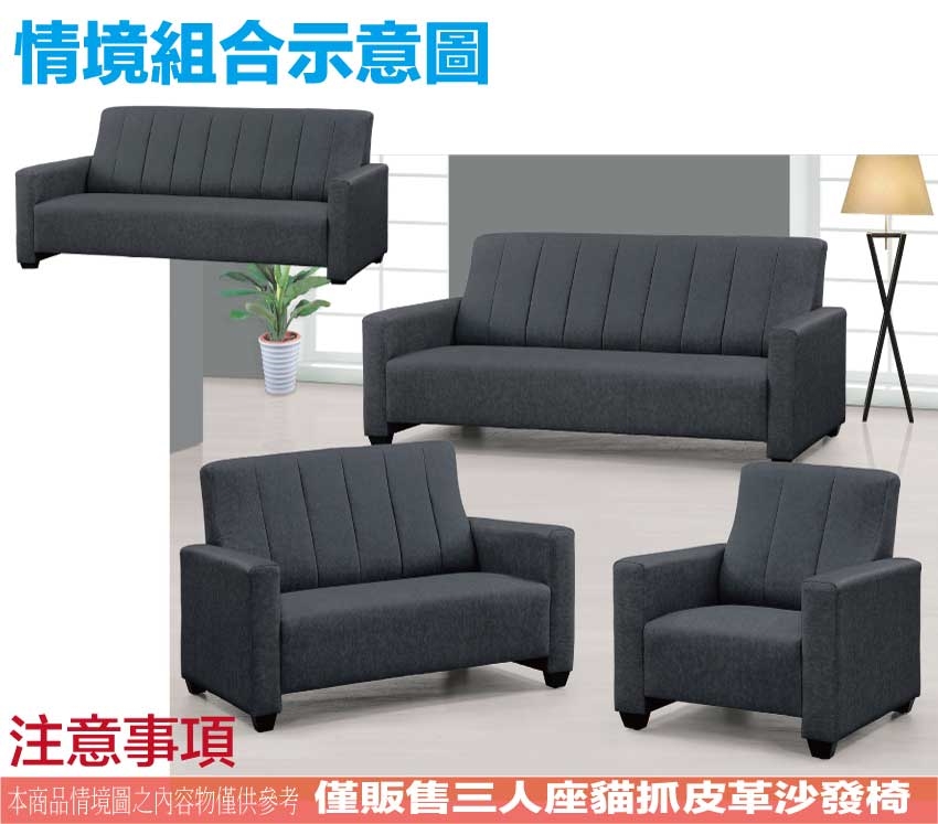 - ◆產品名稱:【綠家居】星空深灰貓抓皮革三人座沙發椅