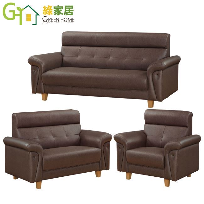 【綠家居】特拉維夫 現代咖啡貓抓皮革沙發椅組合(1+2+3人座組合)