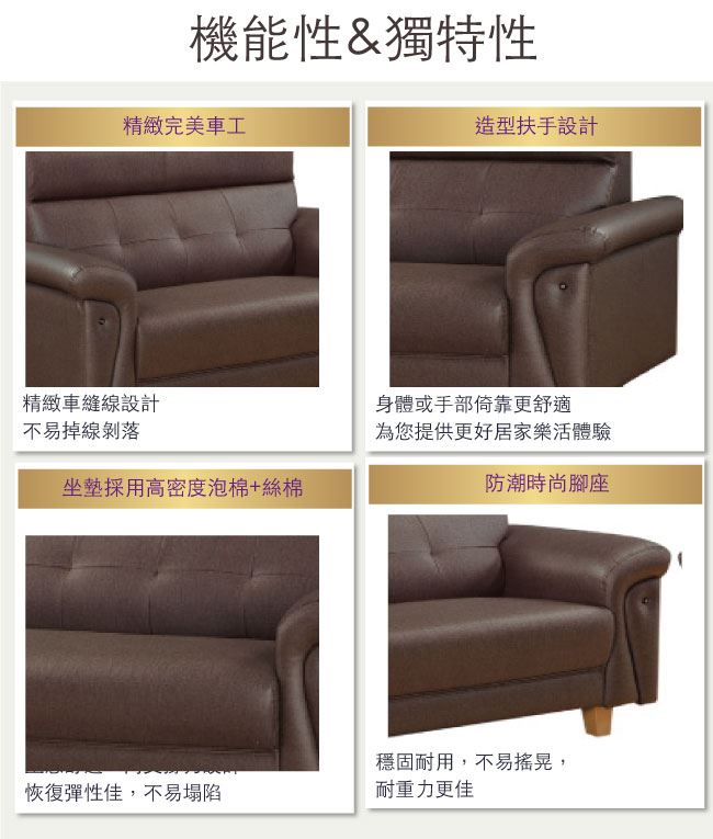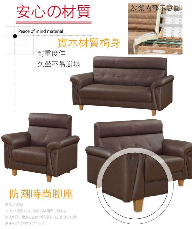 商品介紹 | 【綠家居】特拉維夫 現代咖啡貓抓皮革沙發椅組合(1+2+3人座) 現代咖啡色系+現代美型外觀+安心材質設計,就是這種頂級質感的設計,能輕鬆地融入各種空間風格,採用松木實木骨架&椅身+耐磨貓抓皮革+防潮時尚腳座+高密度三層式泡棉等安心材質,品質安心有保障,現在購買專人送到府服務,免組裝+免運費,讓你省時省力省運費! 【商品特色】 現代咖啡色系+現代美型外觀+安心材質設計 松木實木骨架&椅身+耐磨貓抓皮革+防潮時尚腳座+高密度三層式泡棉等安心材質 專人送貨到府免組裝免運費服務,讓您省時又便利 |