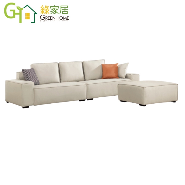 【綠家居】蕾雅米色耐刮貓皮革L型沙發組合(四人座+椅凳)