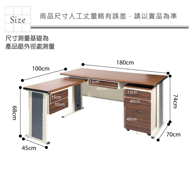| 【綠家居】舒爾L型6尺辦公桌組合(二色可選+單活動櫃+側桌) 產品尺寸: 組合尺寸:(寬)180x (深)170 x(高)74 / 公分 辦公桌:(寬)180x (深)70 x(高)74 / 公分 活動櫃:(寬)40x (深)57 x(高)65 / 公分 側桌:(寬)100x (深)45 x(高)68 / 公分