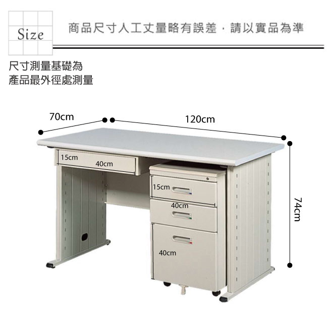 | 【綠家居】普利通4尺辦公桌組合(單抽+活動櫃) 產品尺寸: 辦公桌:(寬)120x (深)70 x(高)74 / 公分 活動櫃:(寬)40x (深)57 x(高)65 / 公分