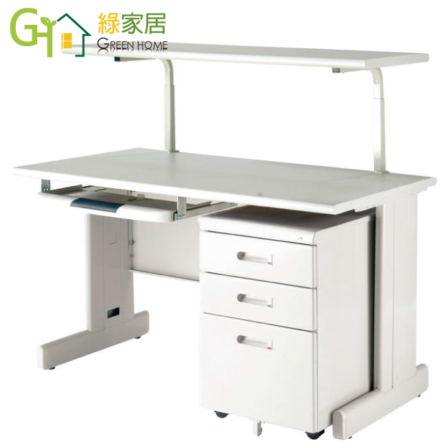 【綠家居】培爾4尺辦公桌組合(單活動櫃+拉合鍵盤架+桌上架)
