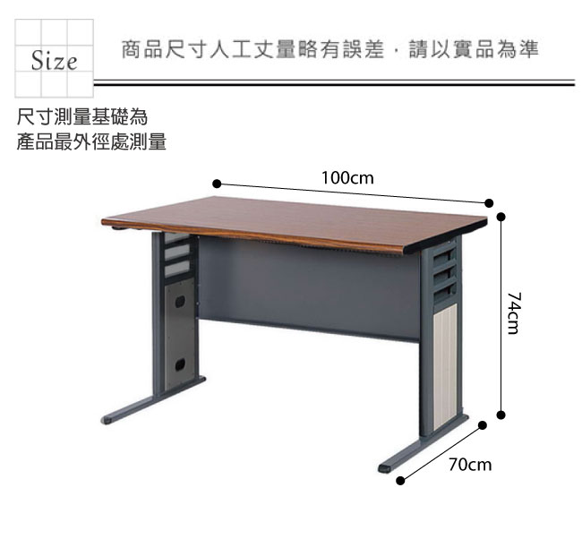 | 【綠家居】艾爾3.3尺辦公桌(無抽) 產品尺寸: 辦公桌:(寬)100x (深)70 x(高)74 / 公分