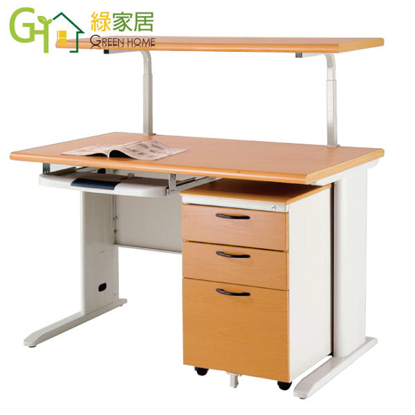 【綠家居】浩克4尺辦公桌組合(鍵盤架+活動櫃+桌上架)