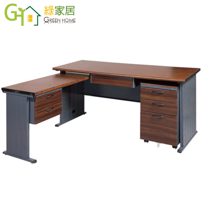 【綠家居】艾普利L型6尺辦公桌組合(二色可選+單活動櫃+側桌)