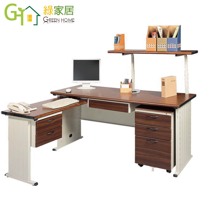 【綠家居】普斯利L型5.3尺辦公桌組合(二色可選+單活動櫃+側桌+桌上架)